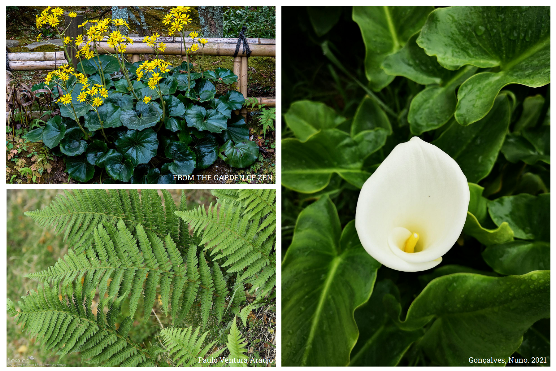 What's needed here is a variety of lush foliage, rich and soft greenery with an almost tropical vibe. So, which common shade tolerant perennials can fulfill this role? I've considered a few options. Farfugium japonicum (leopard plant), Zantedeschia aethiopica (calla lily), and species of the genus Hosta offer extensive leaf blades in various shades of green, textures, and shapes. At first glance, the leaves of Farfugium may resemble those of a water lily, so exuberant that they appear to have grown out of the water!