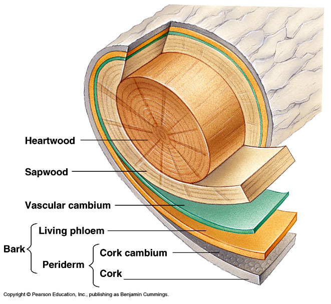 Let's envision a cross-section of a tree trunk or branch. Diametrical growth (secondary growth) takes place through a ring of undifferentiated tissue: the (vascular) cambium (there’s also a cork cambium, but let's leave that aside!)